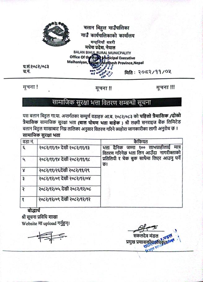 सामाजिक सुरक्षा भत्ता विवरण सम्बन्धी सूचना ।।।
