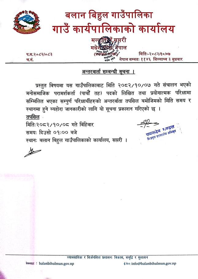 अन्तरवार्ता सम्बन्धी सूचना ।।।
