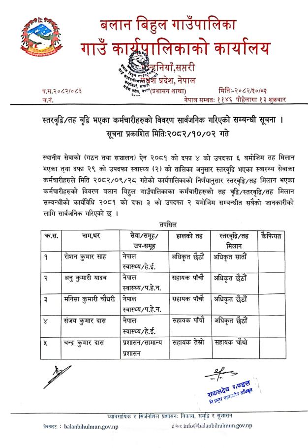 स्तर बृद्धि / तह बृद्धि भएको कर्मचारीहरुको विवरण ।।।
