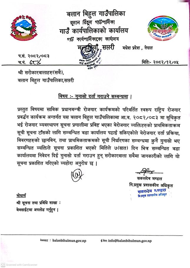 » गुनासो दर्ता गराउने सम्बन्धमा
