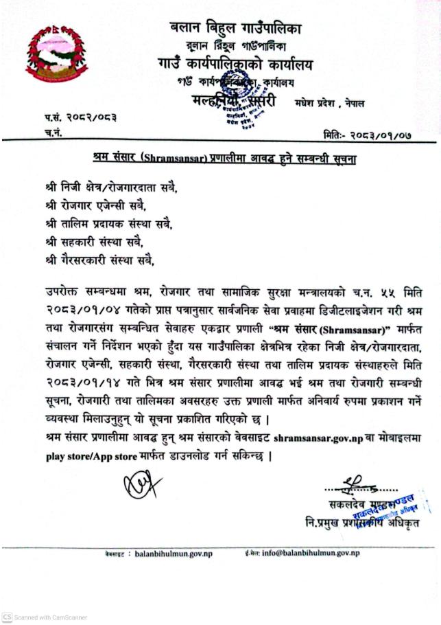 » श्रम संसार (Shramsansar) प्रणालीमा आवद्ध हुने सम्बन्धी सूचना ।।।